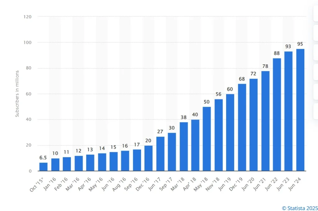 - US Market Share: It is the second most popular service in the United States, capturing 30.7% of the subscriber market.
