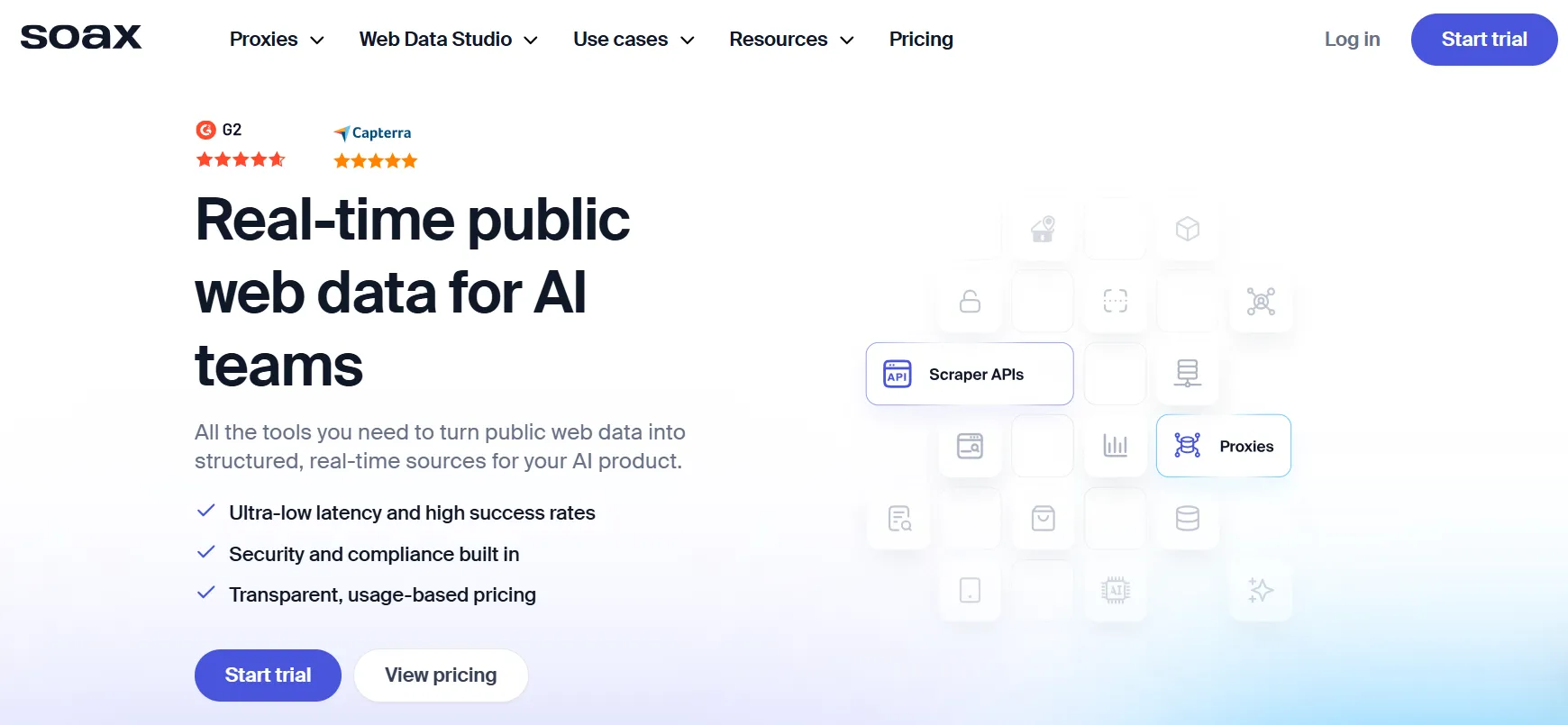 Web Scraping API | $0.09/1K req | Structured data, no-code scraping |