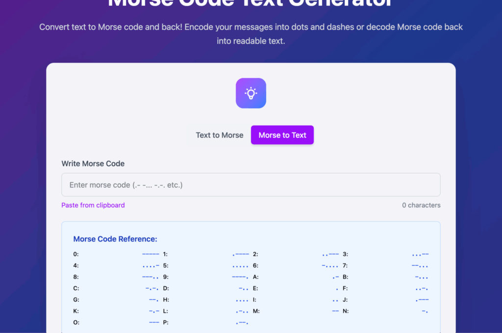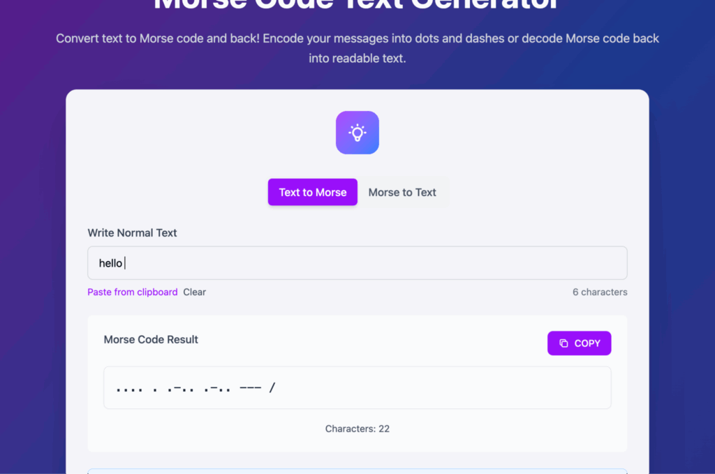 Whether you’re creating puzzles, teaching communication history, or adding a unique touch to content, the tool delivers Morse code tailored to your needs.