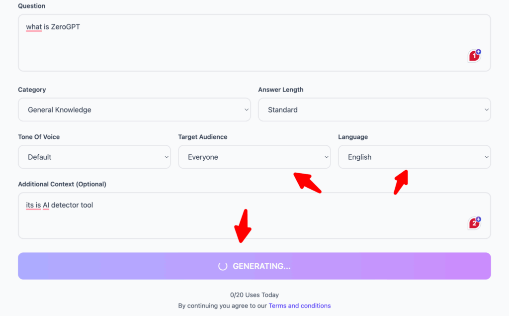 Just input your question or topic, and let the AI generate answers that are informative, relevant, and easy to understand.